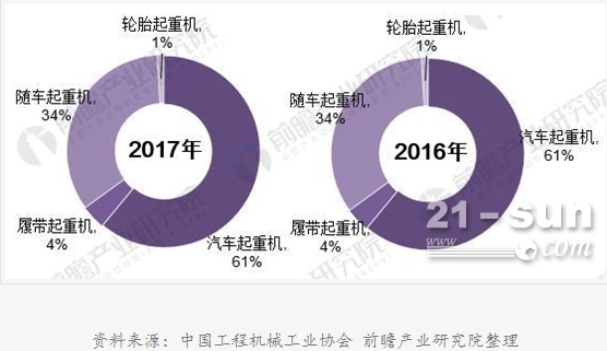 圖表2:2016-2017年中國(guó)起重機(jī)銷量結(jié)構(gòu)對(duì)比圖(單位:%)